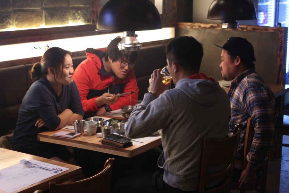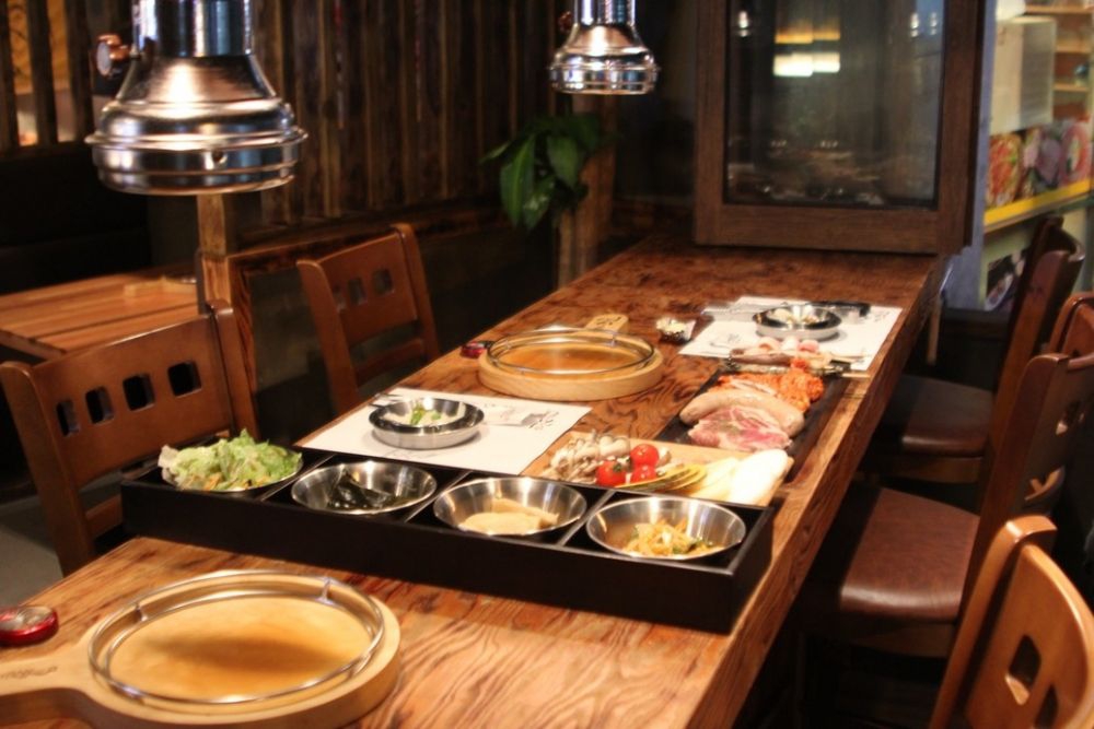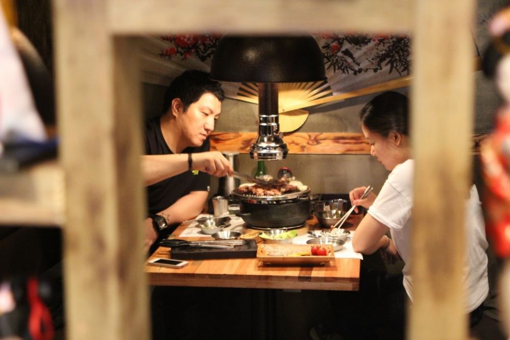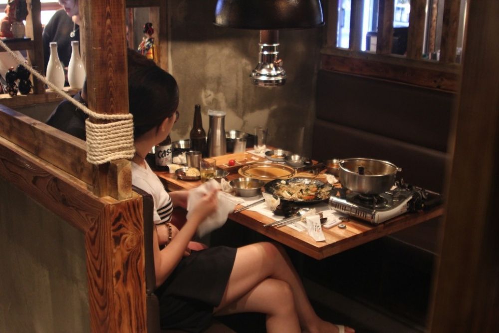 Omvendt bliver atmosfæren om natten til en koreansk sen nattespise restaurant, og det ville ikke være overraskende at se folk have det sjovt og tale med hinanden på tværs af bordene.