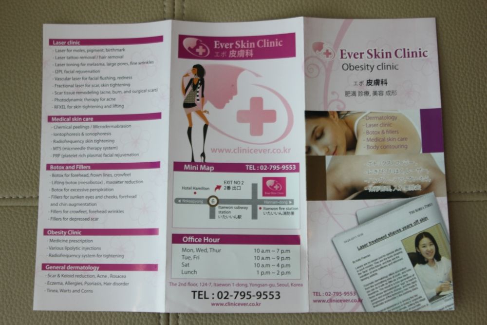 Ever Skin Clinic tiene experiencia en todo tipo de tipos de piel, no solo en tipos de piel coreana. Itaewon es el primer distrito diplomático internacional, y por lo tanto, la clínica recibe a muchas personas diferentes de todo el mundo. Todo es transparente desde la consulta hasta los precios. Pregunta si tienes alguna duda. Cuando entres a la clínica, es probable que veas a otros extranjeros que hablan inglés, lo que te hará sentir algo más cómodo en un entorno nuevo y desconocido como puede ser Seúl, Corea.