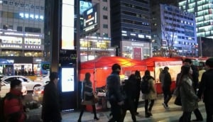 Se c'è una cosa senza la quale i seouliti non possono vivere, è il loro smartphone. Quest'uomo ne ha 3 sul suo scooter. Dai grandi schermi a led ai pali multimediali con internet, fotocamera e guida mappa e sistemi di pagamento dei trasporti pubblici moderni, l'Area della Stazione di Gangnam è dove è il futuro. Apri gli occhi! Dotato dell'ultimo smartphone non c'è nulla che non puoi trovare o fare a Seul!