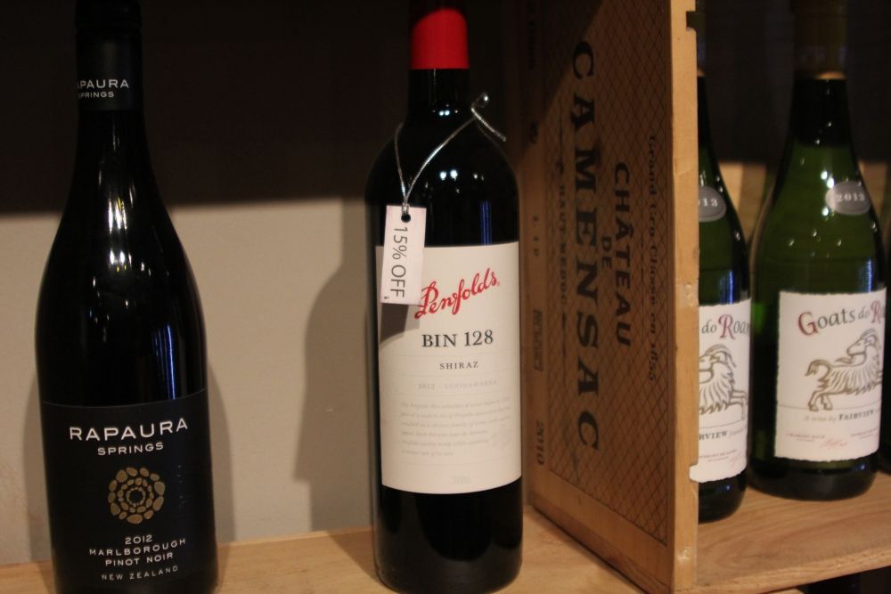 De bekende wijnen van de Wine Fountain worden ook verkocht om mee te nemen. Breng je eigen houder mee en deze wordt voor je gevuld tegen een vaste prijs per liter, of ze kunnen je een fles geven en er een kurk in slaan.