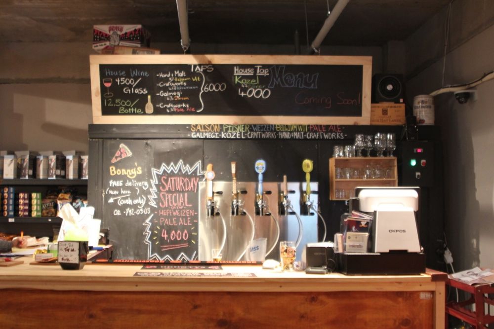 The Hidden Cellar bevindt zich in Haebangchon (HBC). Vanaf afslag 2 van het Noksapyeong station, loop recht door tot waar de weg zich splitst. Ga langs de kimchi-potten aan je linkerkant. Direct na de snelheidsdrempel (voordat je het PSA Academy aan je rechterkant bereikt), sla je linksaf bij de makelaar. Je kunt de kleurrijke muur met de gele scooter niet missen. The Hidden Cellar bevindt zich in de kelder van het gebouw in het smalle steegje. (Onder het autoloket) Let op de borden.