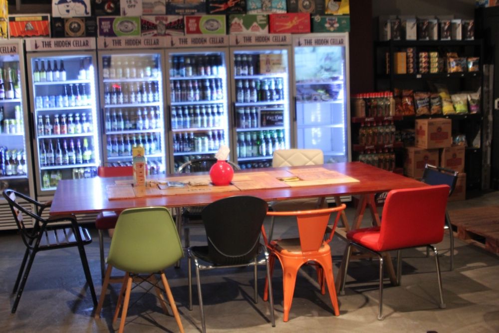 The Hidden Cellar heeft een grote koelkast met 5 ambachtelijke bieren van de tap. Je kunt nu ook een paar bieren kopen.