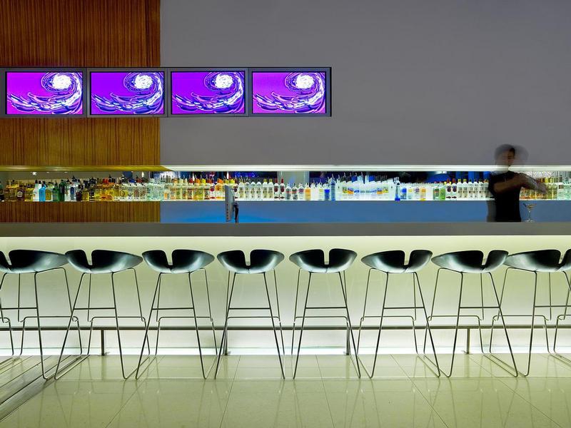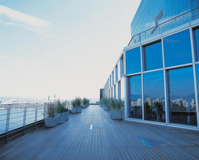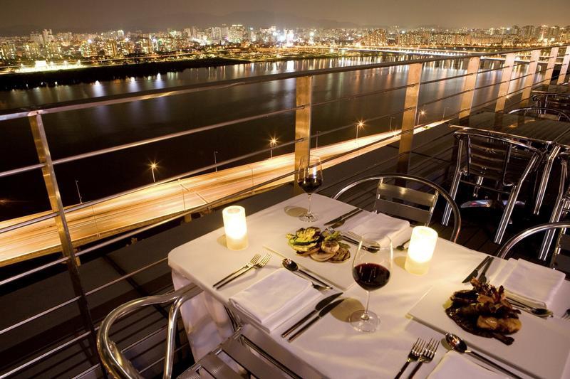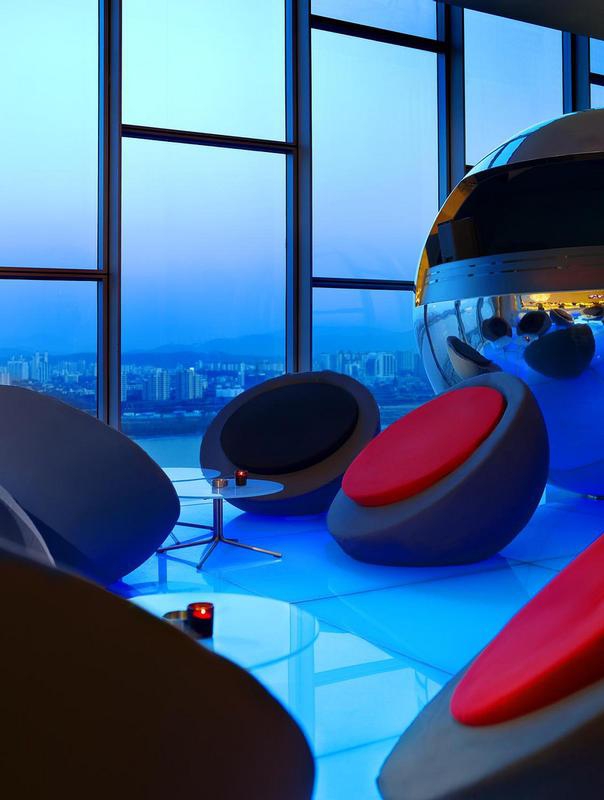 Мультимедийные установки держат вас подключенными к реальному миру. В то время как за стеклянными стенами река Хан и огни Сеула предстают перед вами как видение.